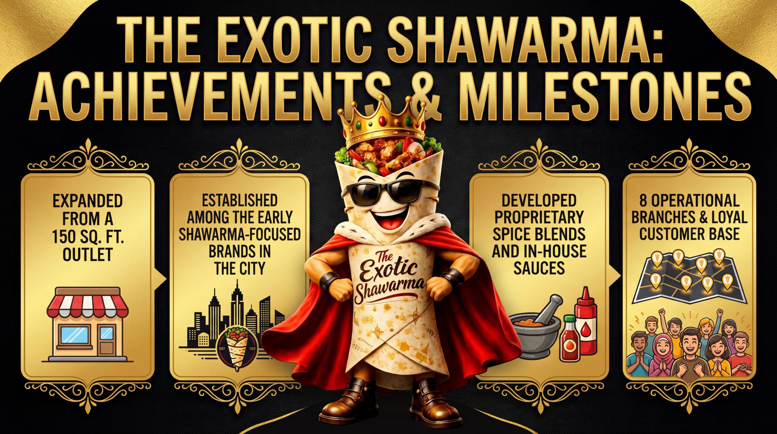 With a proven operational model, centralized preparation systems, and a strong flavour-first positioning, The Exotic Shawarma is strategically positioned for expansion. Growth avenues include new company-owned outlets, partnerships, and structured franchising opportunities.